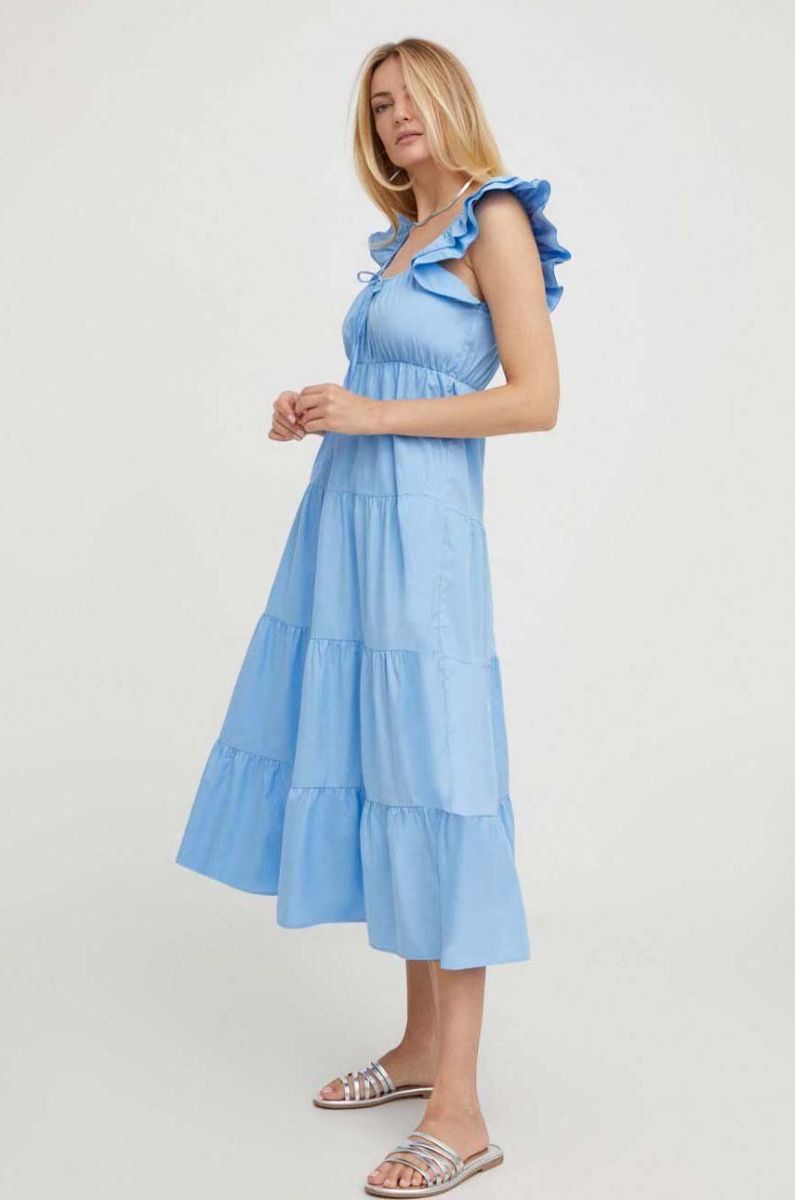 Бавовняна сукня Answear Lab midi розкльошена колір блакитний (3361037)