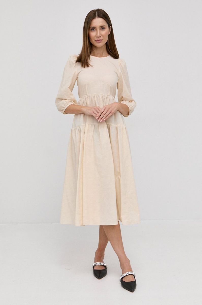Бавовняна сукня Beatrice B колір кремовий midi розкльошена