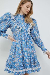 Бавовняна сукня Custommade mini розкльошена колір блакитний