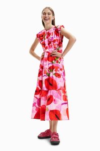 Бавовняна сукня Desigual колір червоний midi oversize