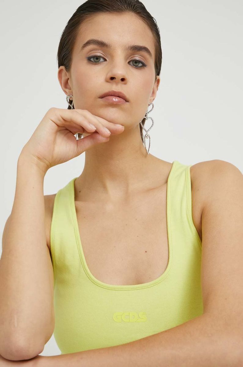 Бавовняна сукня GCDS колір зелений mini облягаюча