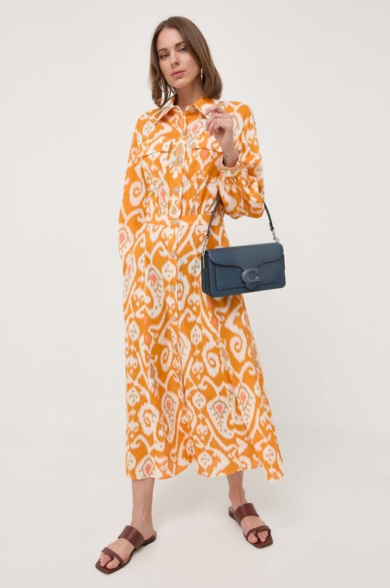 Бавовняна сукня Luisa Spagnoli колір помаранчевий midi розкльошена