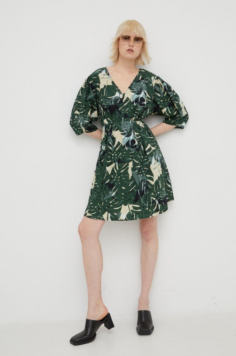Бавовняна сукня Marc O'Polo колір зелений mini розкльошена