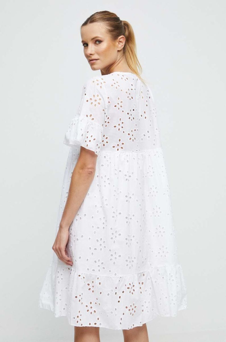 Бавовняна сукня Medicine колір білий midi розкльошена (3383004)