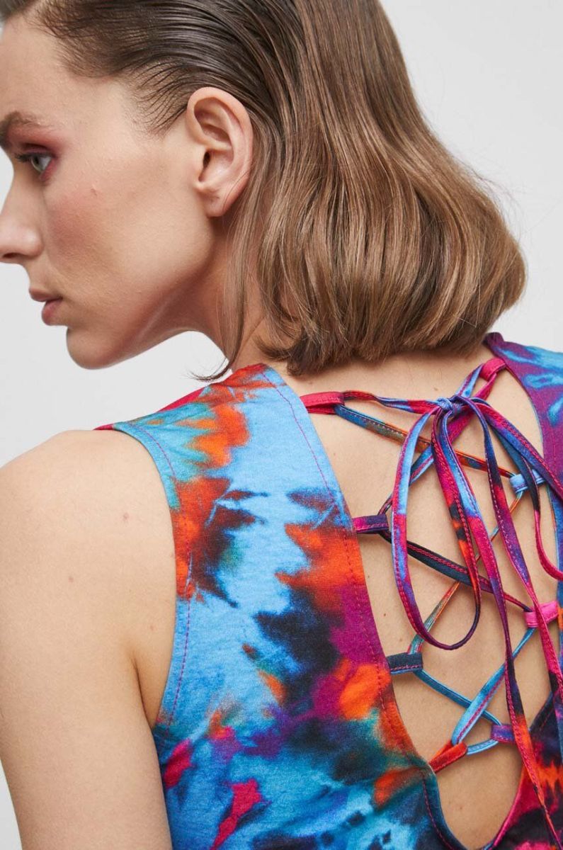 Бавовняна сукня Medicine midi облягаюча колір барвистий