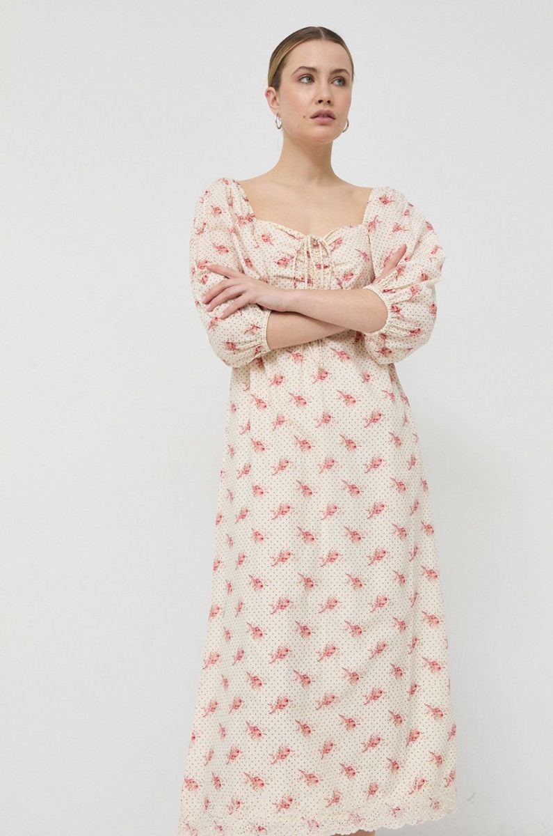 Бавовняна сукня Notes du Nord Filippa колір бежевий maxi розкльошена