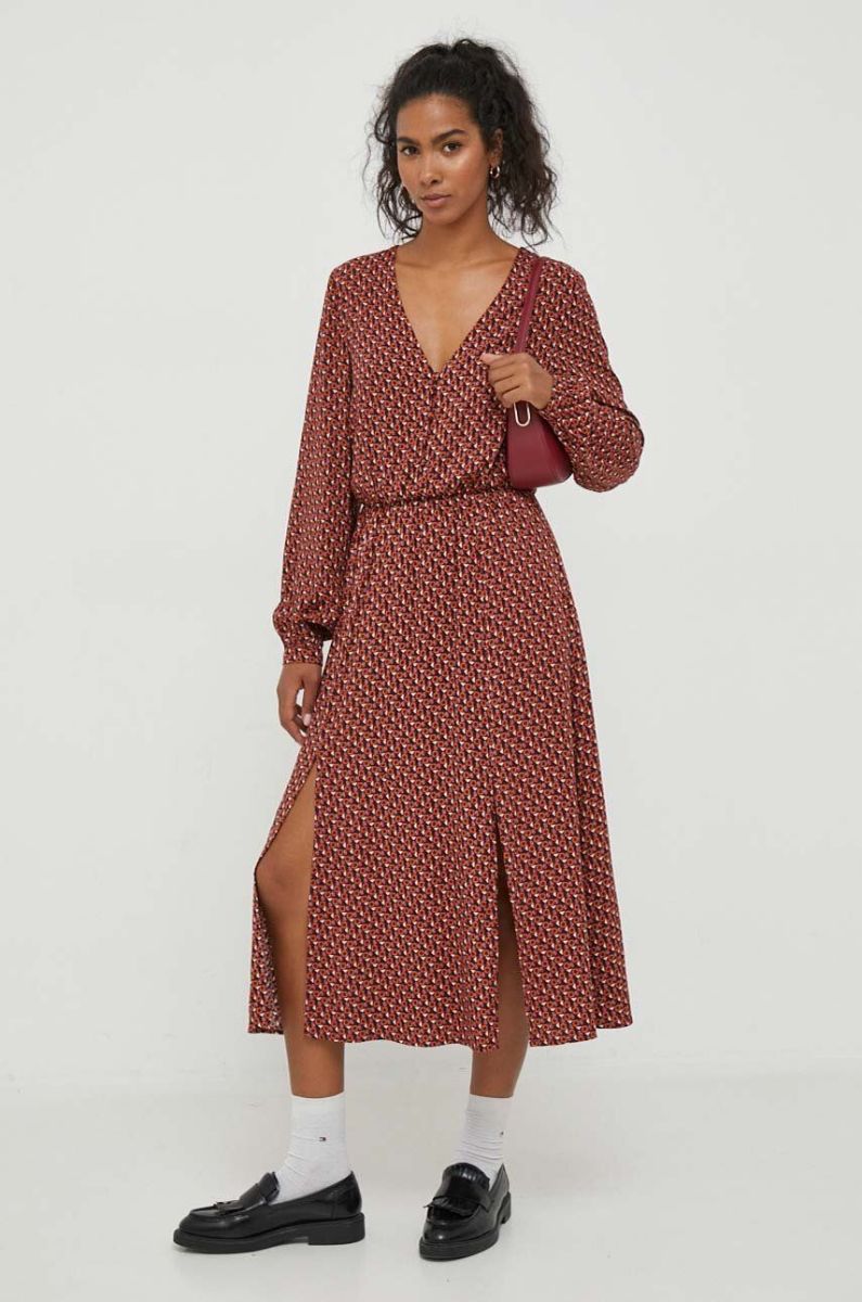 Бавовняна сукня Pepe Jeans колір бордовий mini oversize