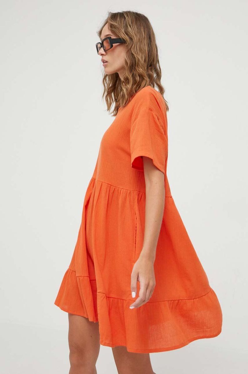 Бавовняна сукня Roxy колір помаранчевий mini oversize