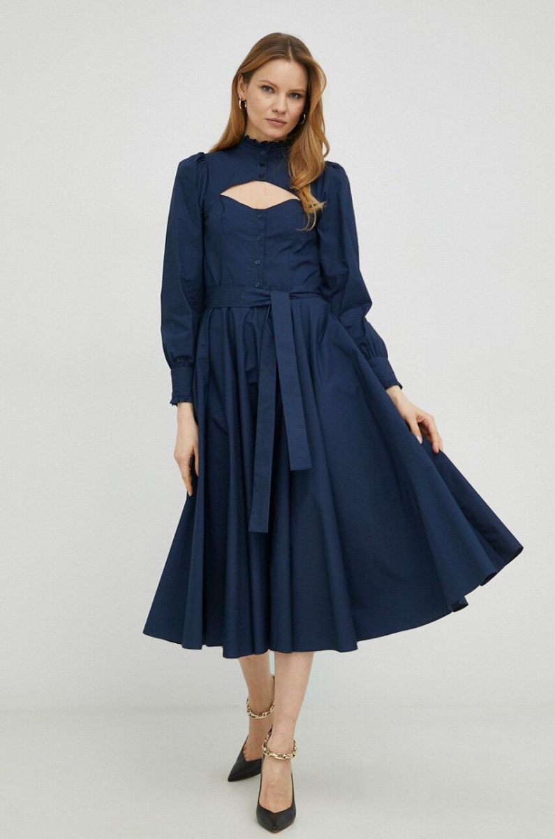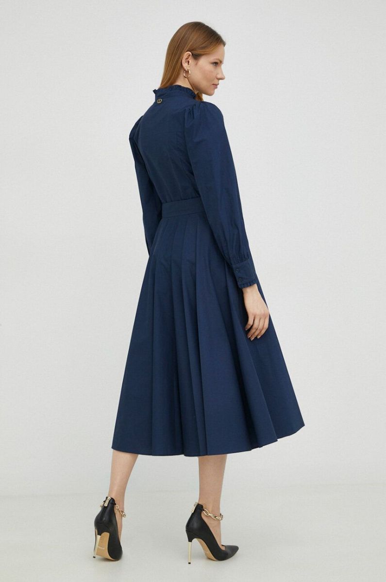 Бавовняна сукня Twinset колір синій midi розкльошена