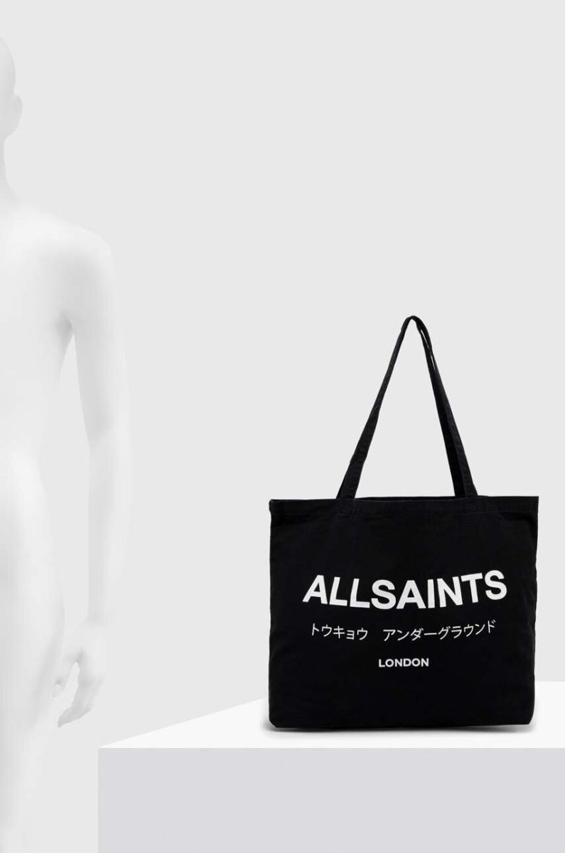 Бавовняна сумка AllSaints UNDERGROUND TOTE колір чорний Один розмір