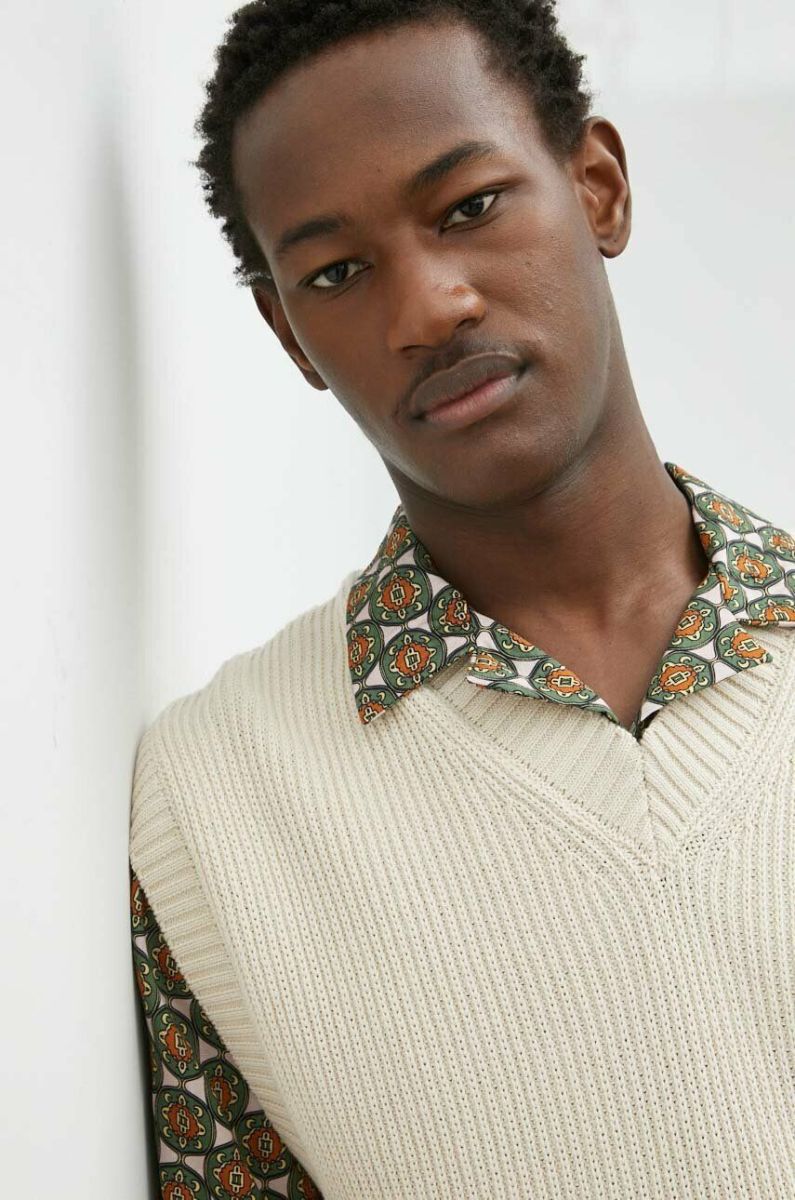 Бавовняна жилетка Les Deux колір бежевий