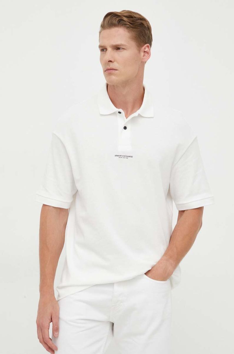 Бавовняне поло Armani Exchange колір бежевий з принтом