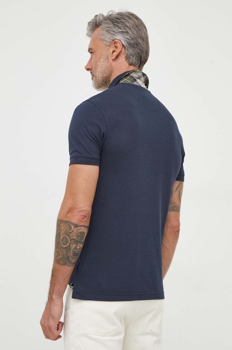 Бавовняне поло Barbour колір синій однотонний