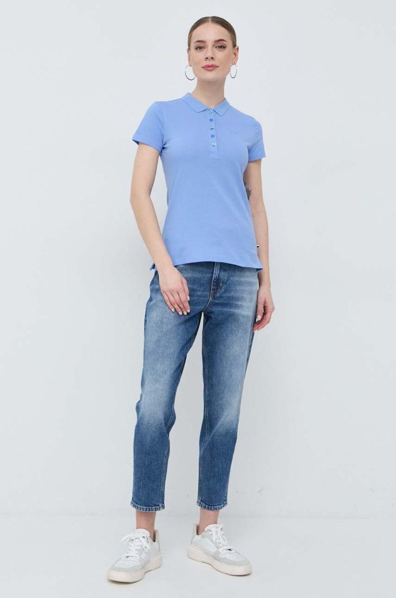 Бавовняне поло BOSS колір блакитний
