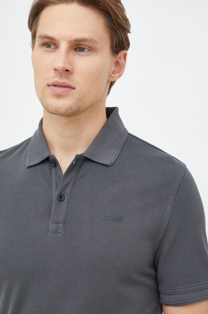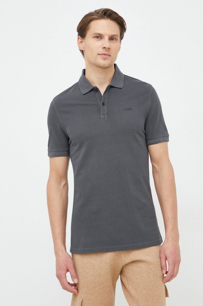 Бавовняне поло BOSS Boss Casual колір сірий однотонне