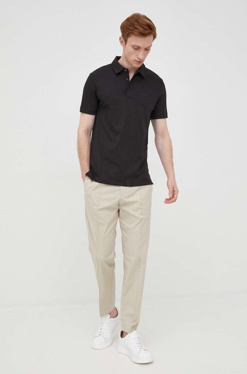 Бавовняне поло BOSS колір чорний однотонний (2243561)