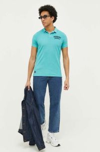Бавовняне поло Superdry колір бірюзовий з аплікацією