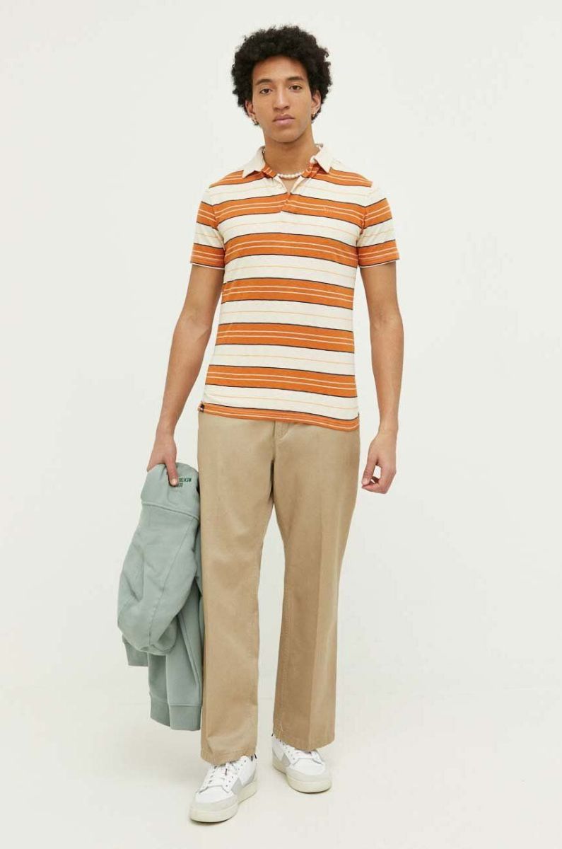Бавовняне поло Superdry колір помаранчевий візерунок