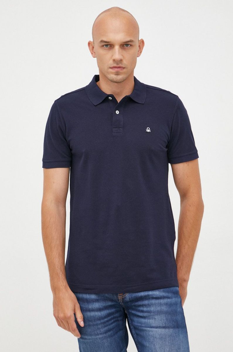 Бавовняне поло United Colors of Benetton колір синій однотонний (2534998)
