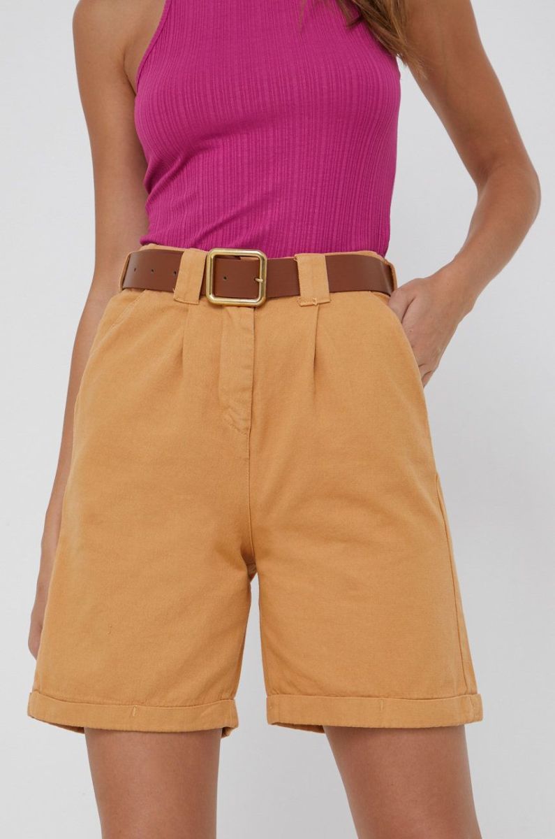 Бавовняні шорти Answear Lab жіночі колір бежевий однотонні висока посадка