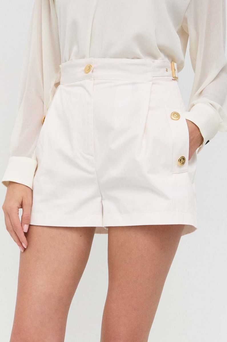 Бавовняні шорти Elisabetta Franchi колір бежевий однотонні висока посадка