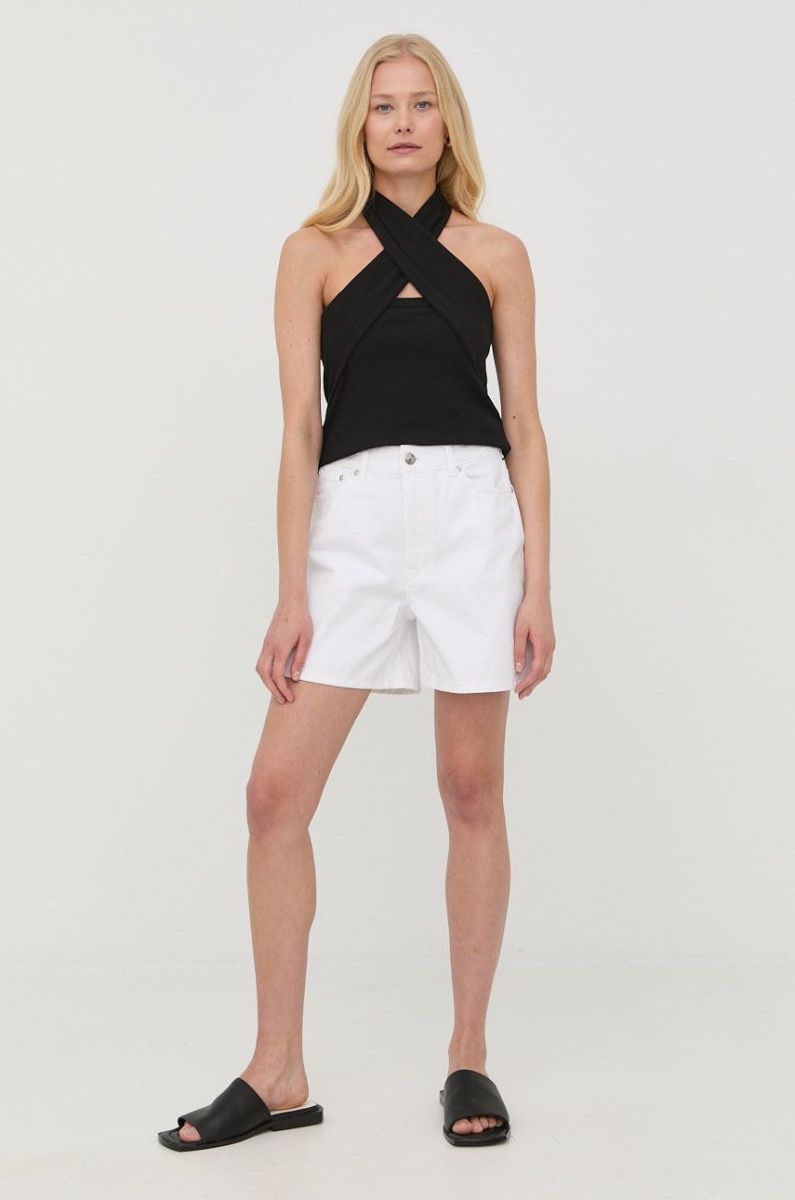 Бавовняні шорти Gestuz жіночі колір білий однотонні висока посадка