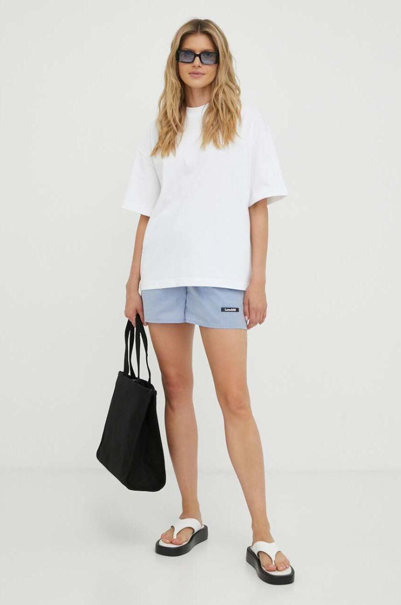 Бавовняні шорти Lovechild однотонні висока посадка колір блакитний