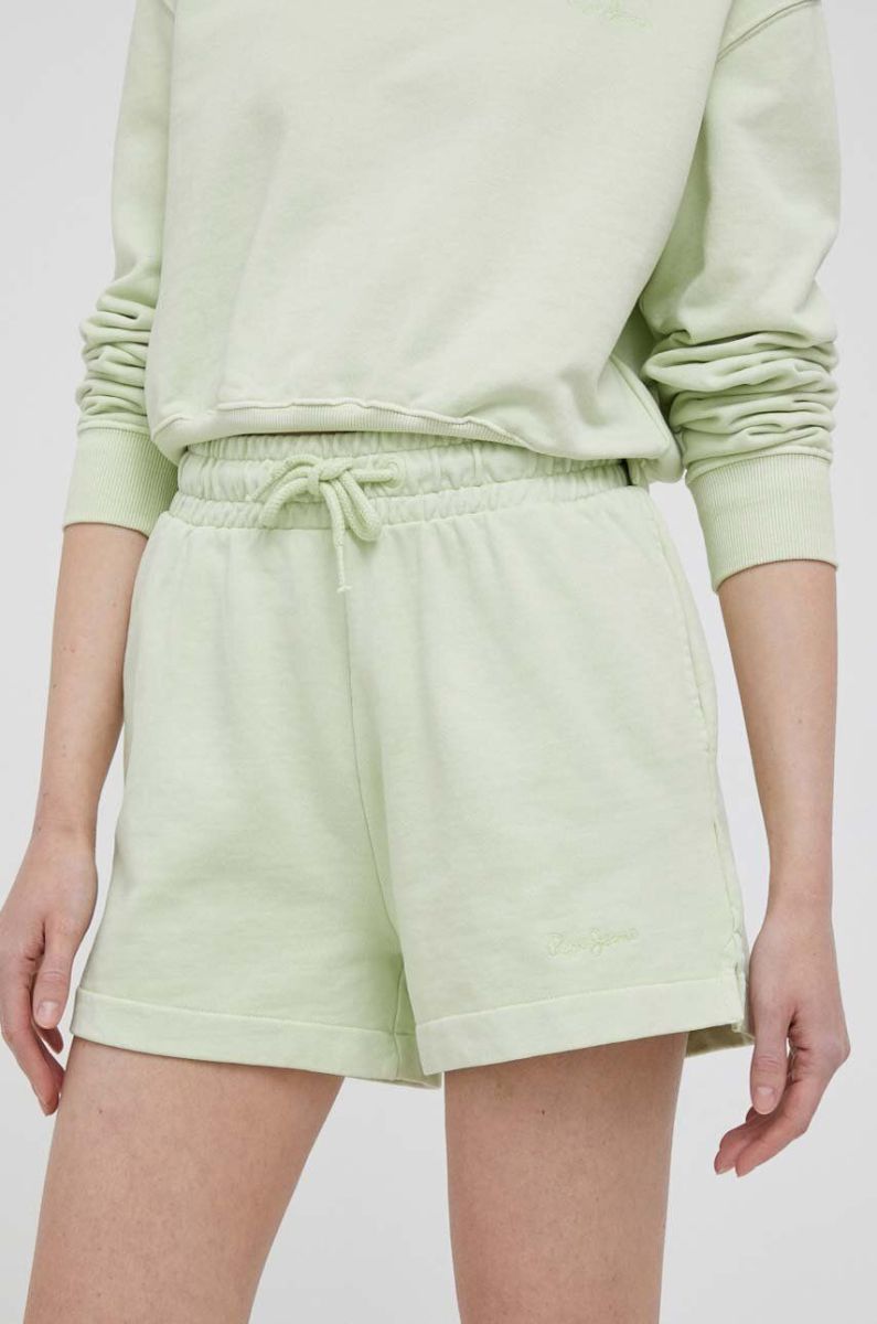 Бавовняні шорти Pepe Jeans ADRIANA колір зелений однотонні висока посадка
