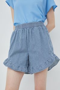 Бавовняні шорти Pieces жіночі колір синій візерунок висока посадка
