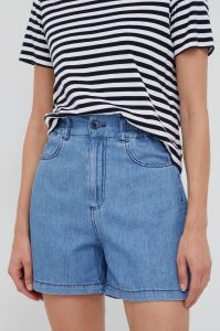 Бавовняні шорти Sisley жіночі однотонні висока посадка колір блакитний