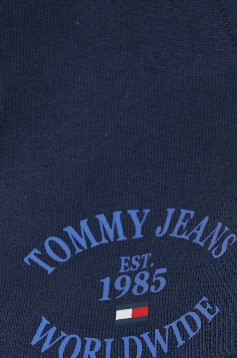 Бавовняні шорти Tommy Jeans колір синій з принтом висока посадка