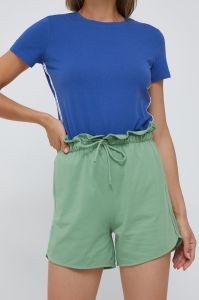 Бавовняні шорти United Colors of Benetton жіночі колір зелений однотонні висока посадка
