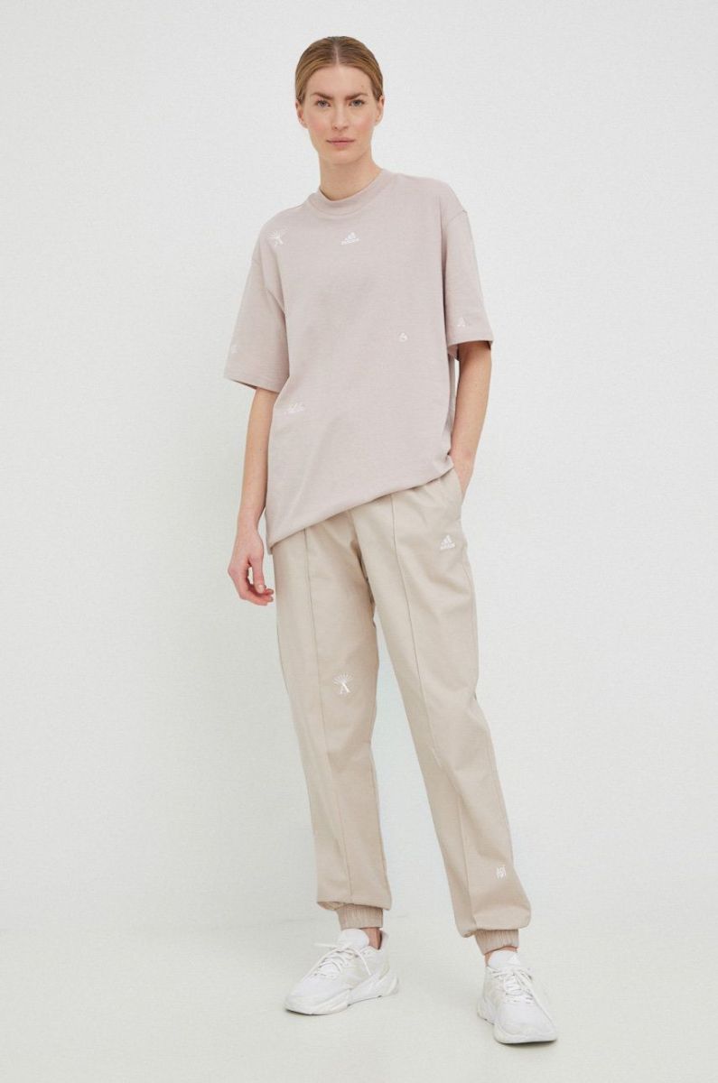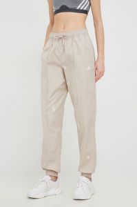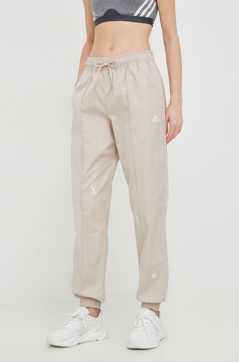 Бавовняні штани adidas жіночі колір бежевий однотонні