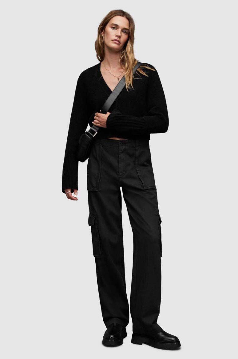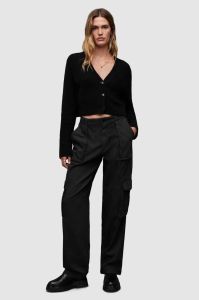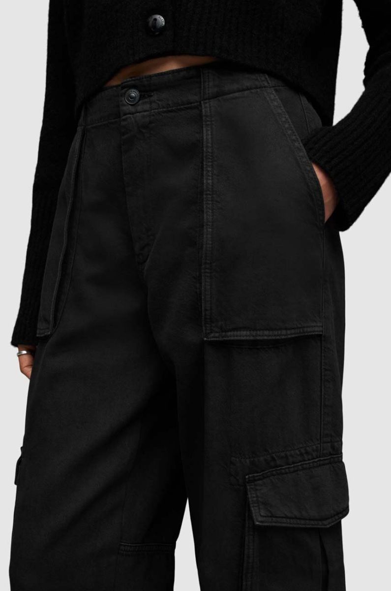 Бавовняні штани AllSaints FRIEDA STRAIGHT жіночі колір чорний фасон cargo середня посадка