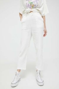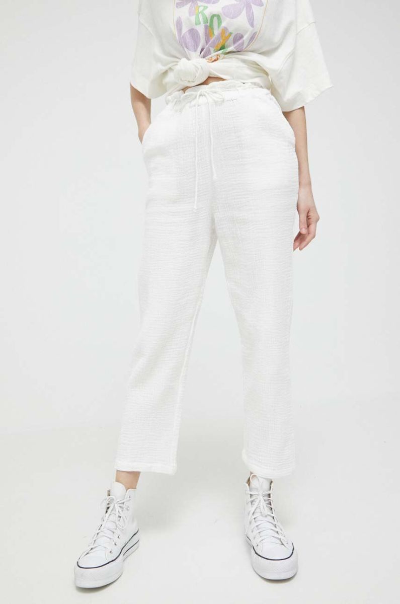 Бавовняні штани Billabong колір білий пряме висока посадка