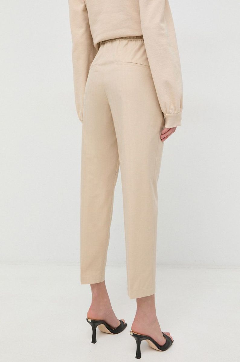 Бавовняні штани BOSS жіночі колір бежевий пряме висока посадка