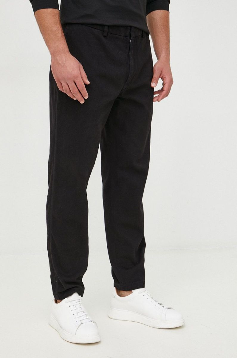 Бавовняні штани Emporio Armani чоловічі колір чорний пряме