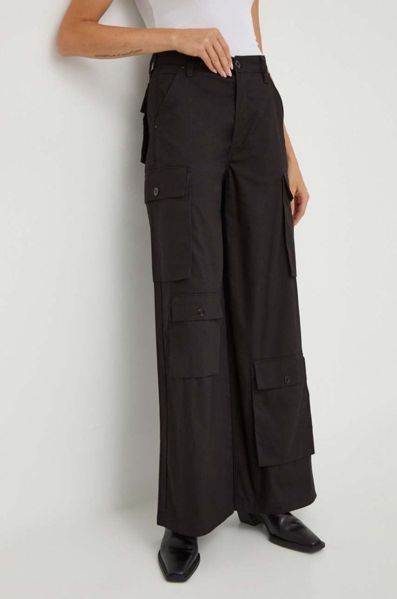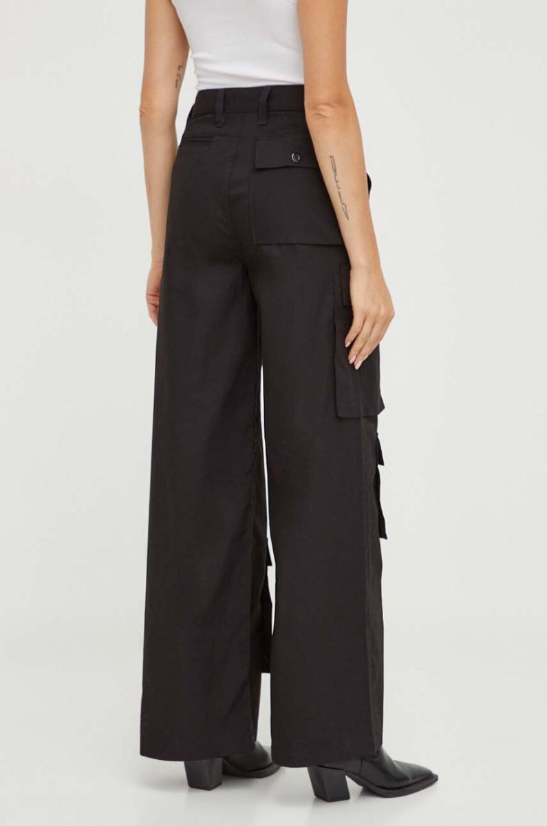 Бавовняні штани G-Star Raw колір чорний пряме висока посадка