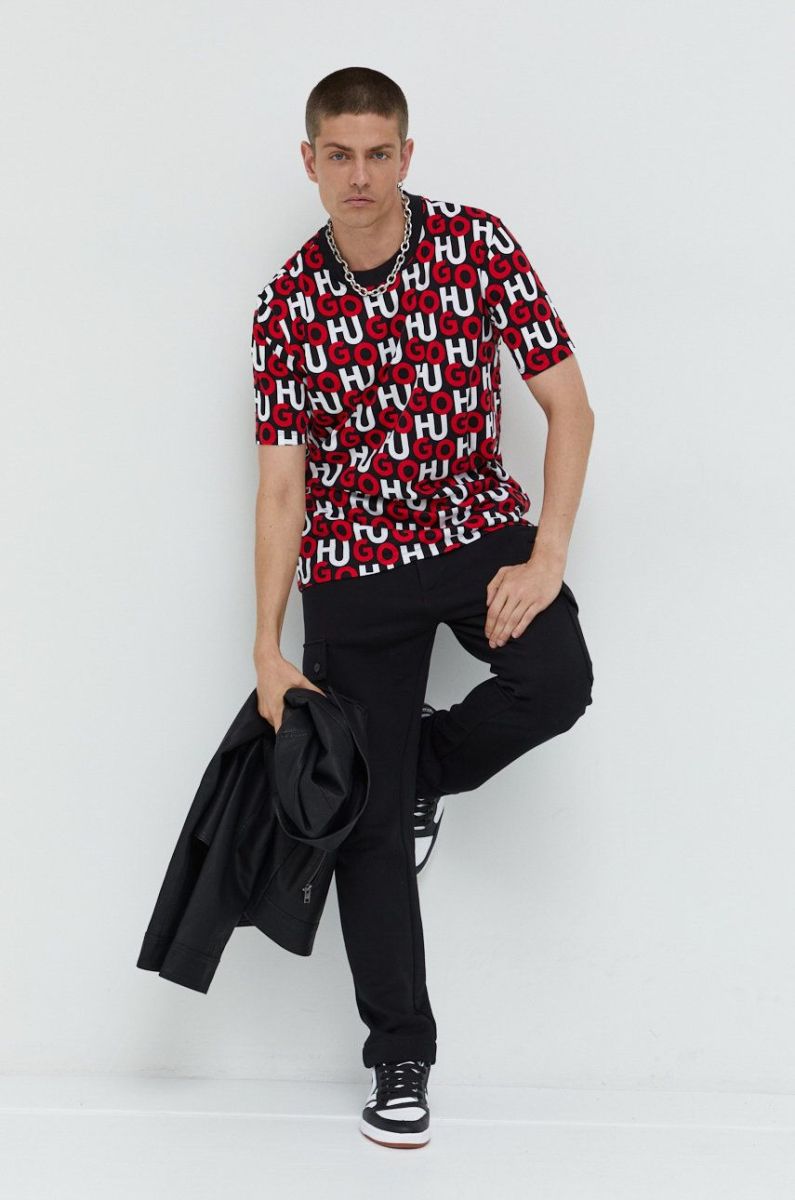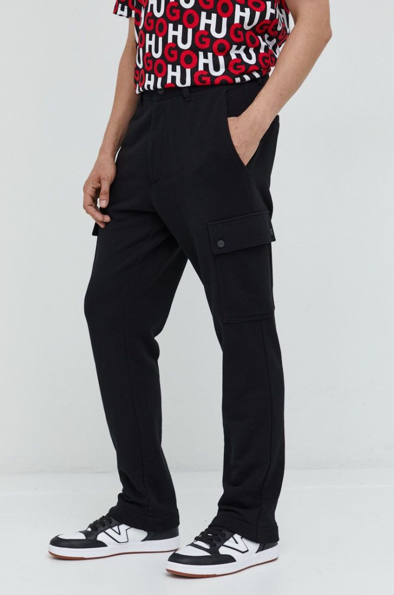 Бавовняні штани HUGO чоловічі колір чорний фасон cargo