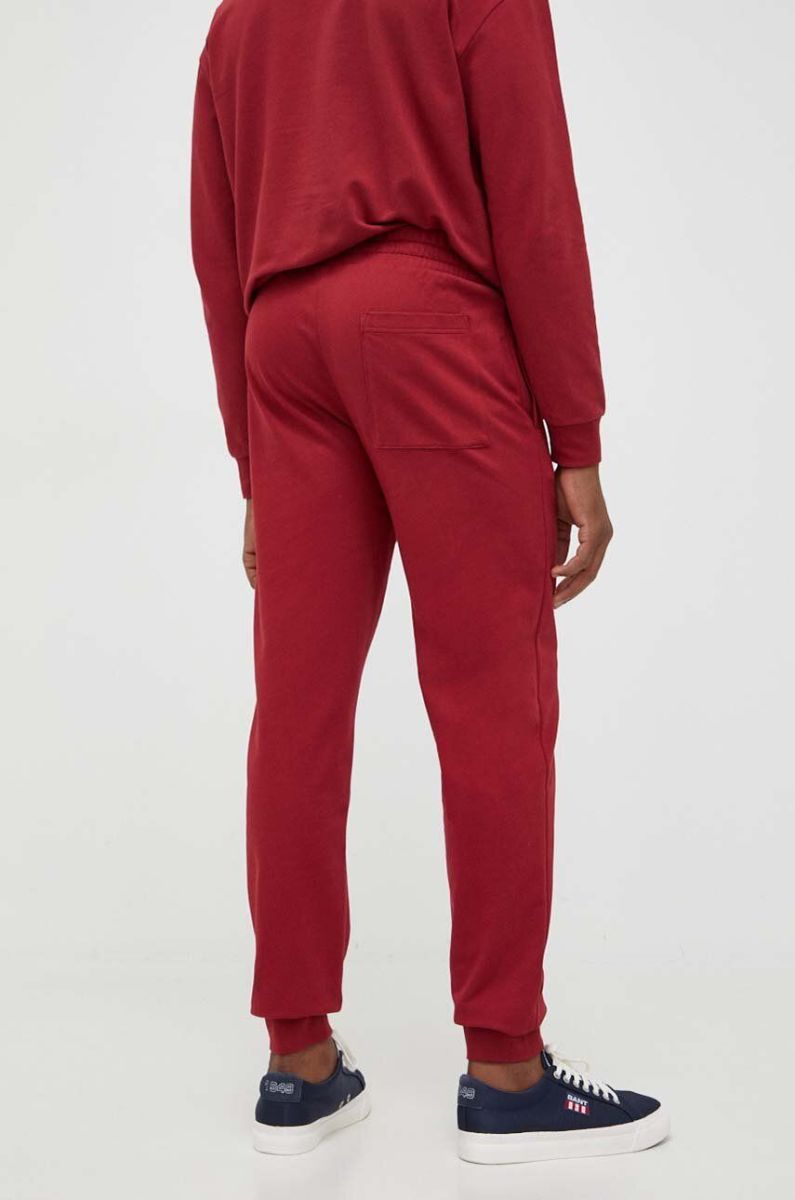 Бавовняні штани лаунж HUGO колір бордовий однотонні