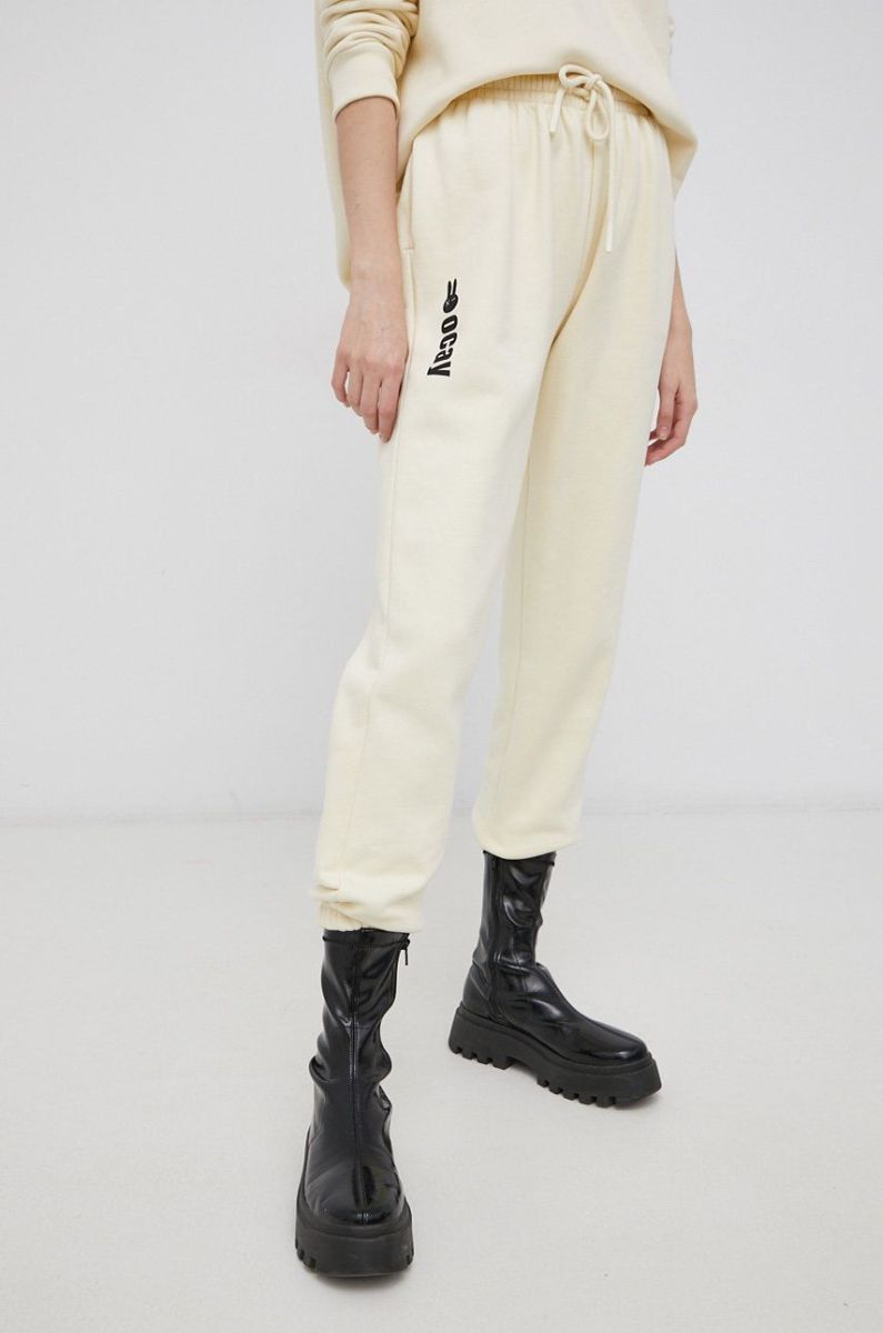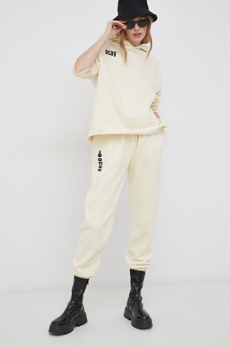 Бавовняні штани OCAY жіноче колір жовтий з принтом