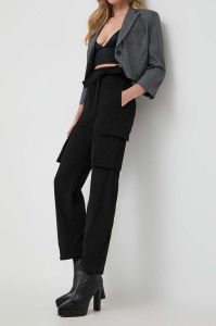 Бавовняні штани Pinko колір чорний пряме висока посадка