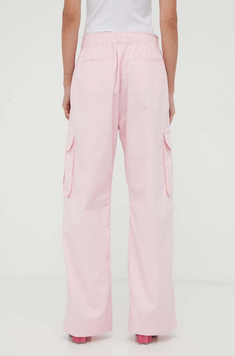Бавовняні штани Stine Goya Fatuna колір рожевий пряме висока посадка