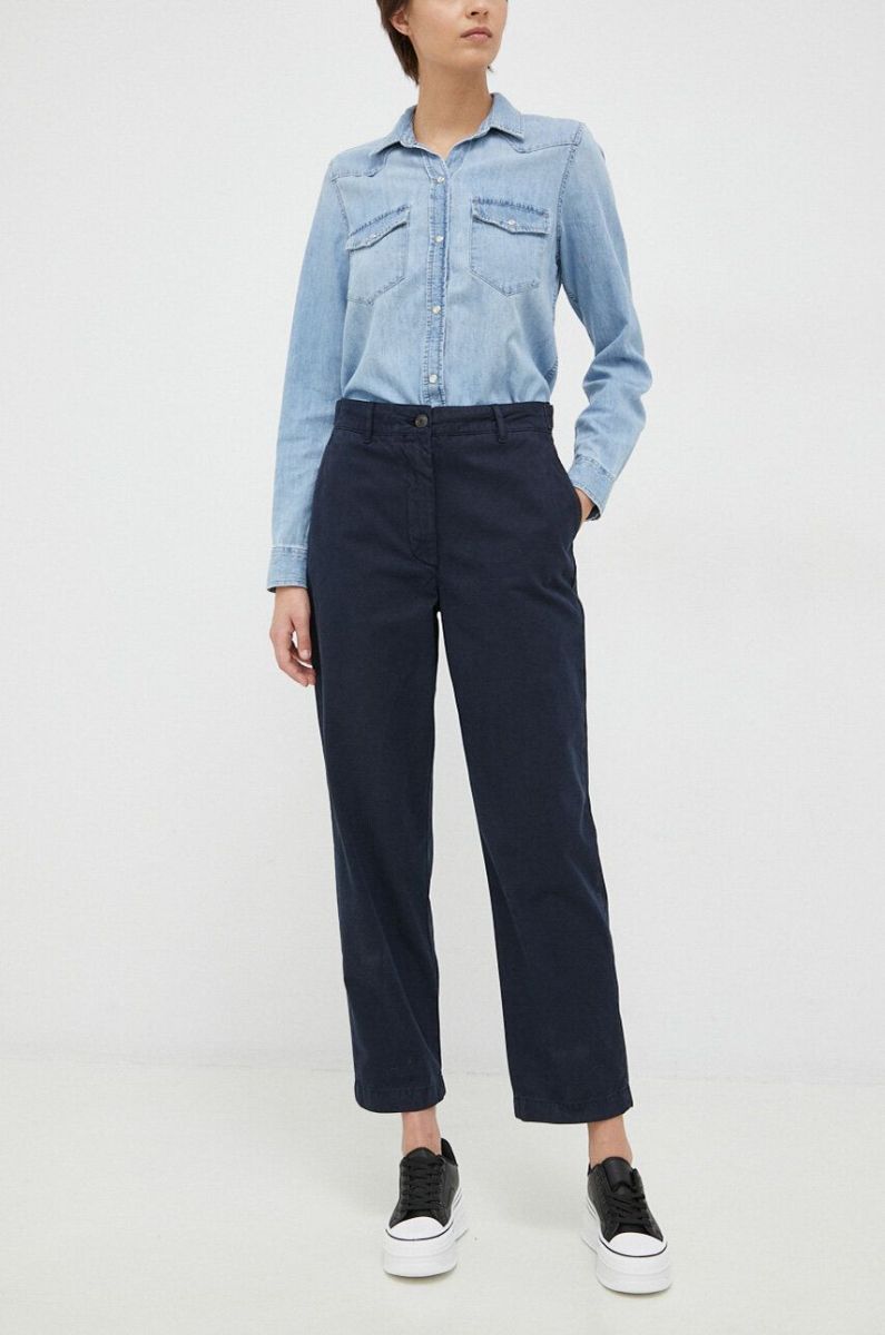 Бавовняні штани Tommy Hilfiger колір синій пряме висока посадка (3004252)