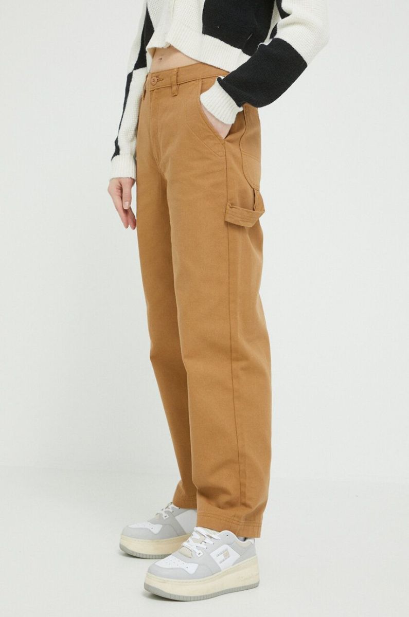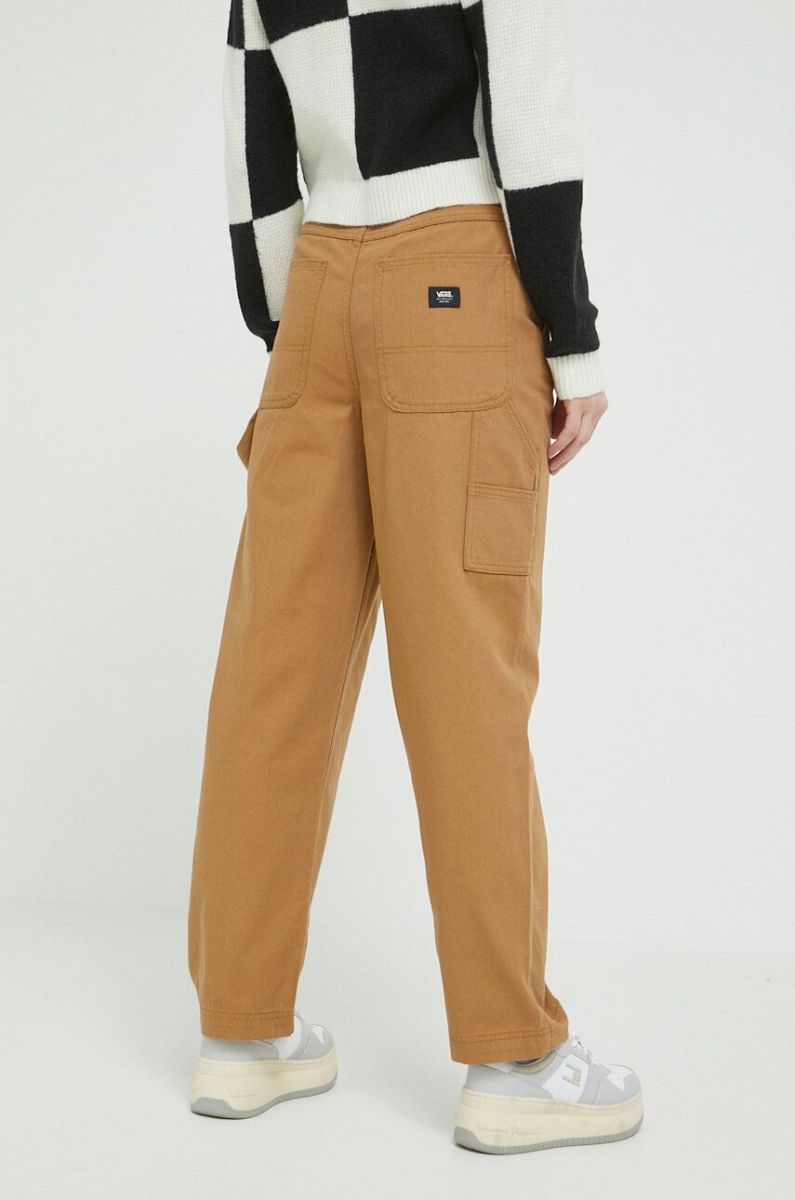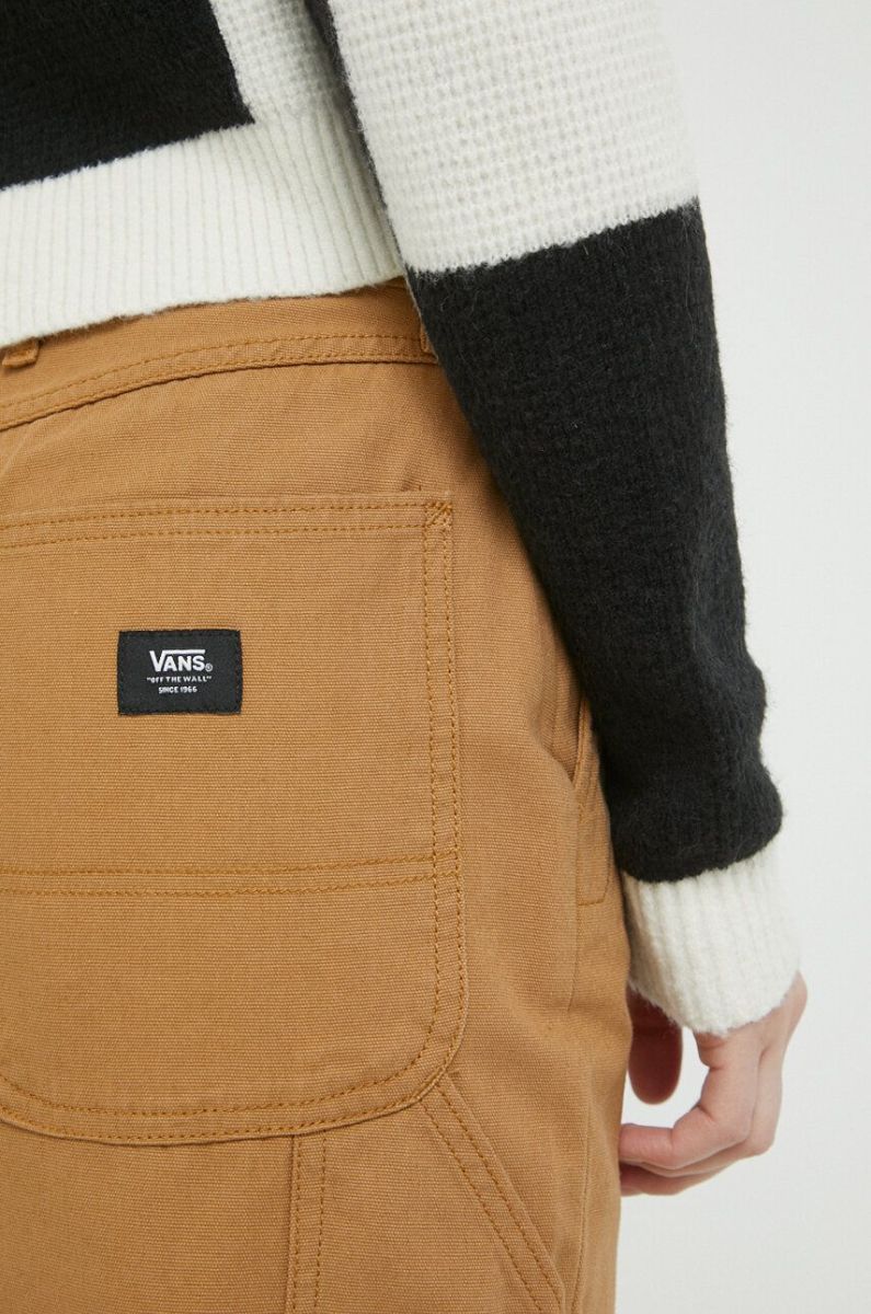 Бавовняні штани Vans колір коричневий пряме висока посадка