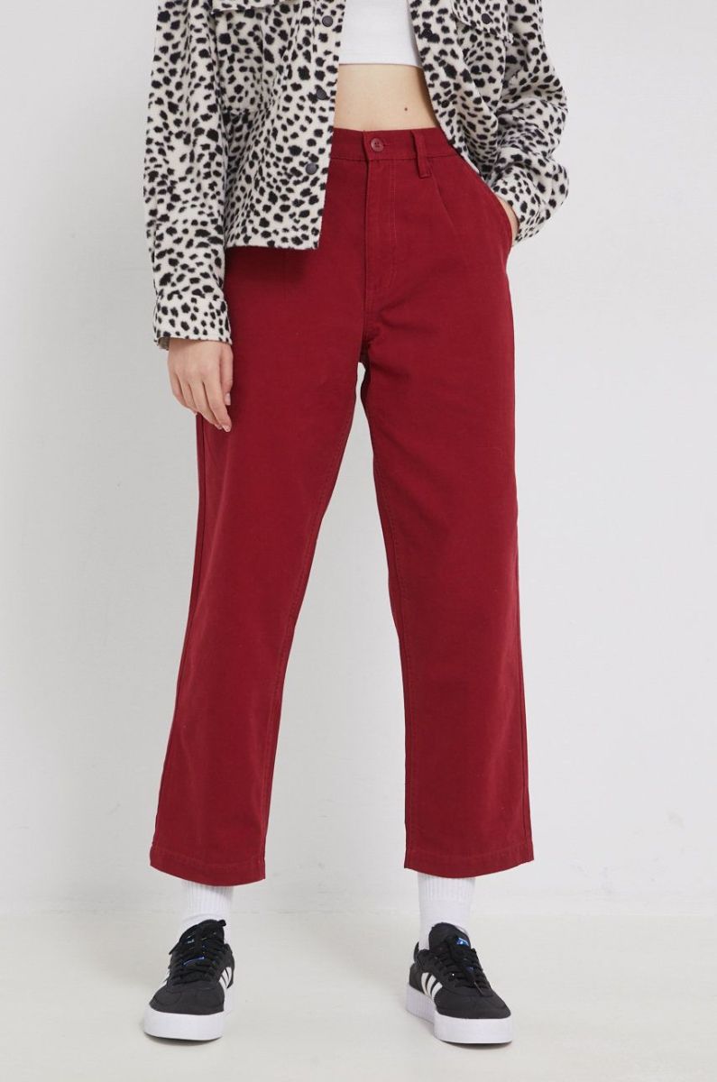 Бавовняні штани Vans жіночі колір червоний фасон chinos висока посадка