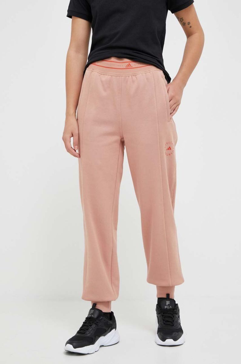 Бавовняні спортивні штани adidas by Stella McCartney колір помаранчевий з принтом