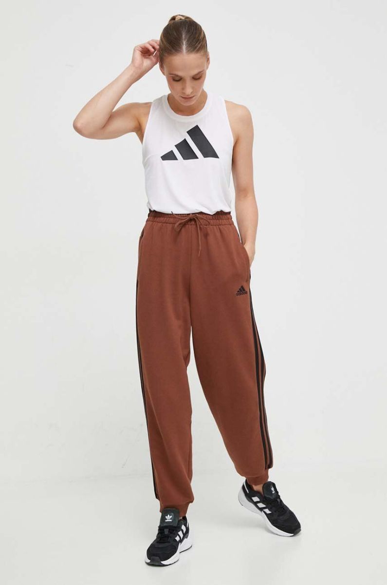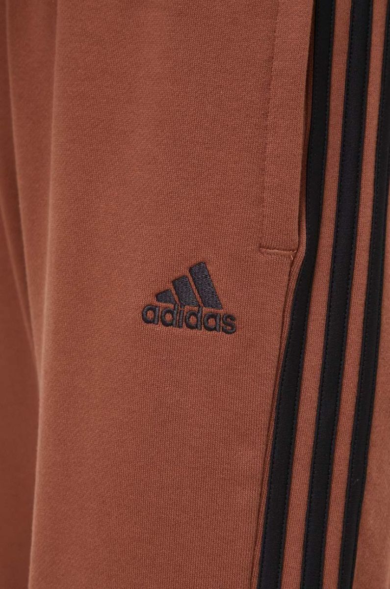 Бавовняні спортивні штани adidas колір коричневий з аплікацією
