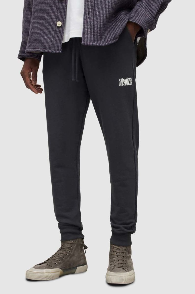 Бавовняні спортивні штани AllSaints чоловічі колір чорний з принтом