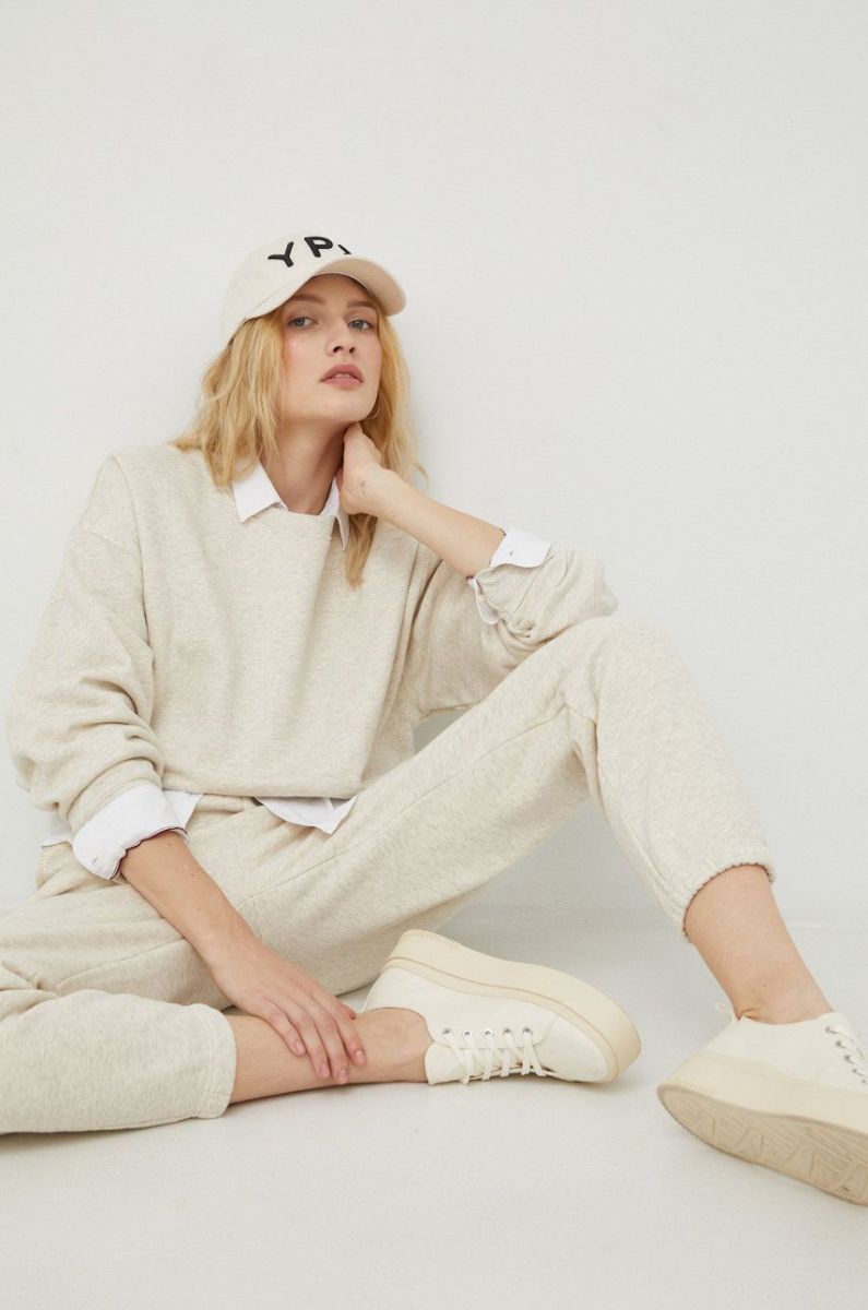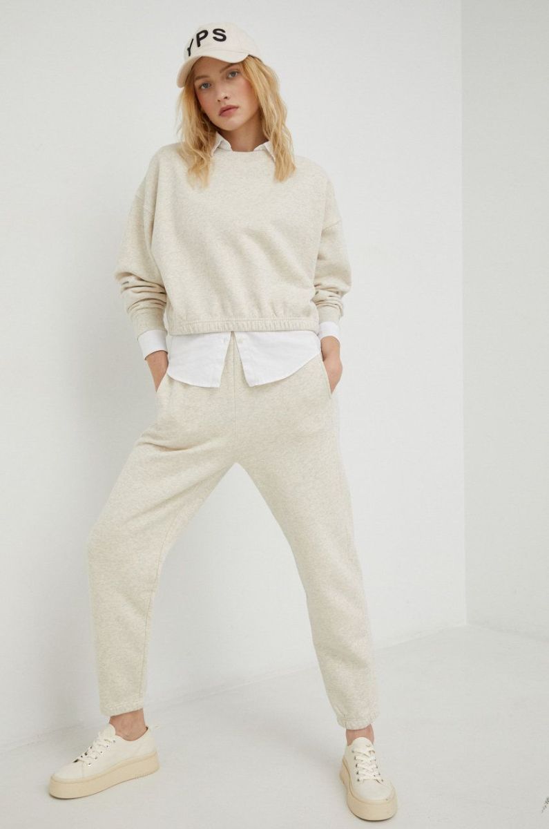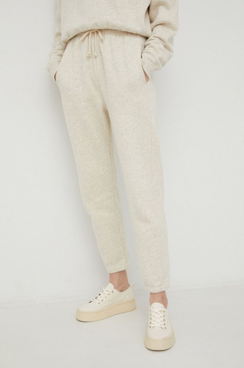 Бавовняні спортивні штани American Vintage жіночі колір бежевий меланж